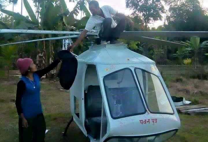 It took class-3 pass Sagar Prasad three years to complete his dream project (of making a helicopter) with local technology. He worked in a closed room in the last three years assisted by his wife Jonmony Mayank. Prasad, a welder by profession working in Ruksin town of East Siang district, initially used a diesel engine of a vehicle in his helicopter.