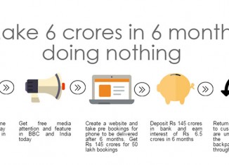 Get Rs 145 crore after getting 50 lakh plus customers with Rs 40 each for delivery. Now, promise a delivery in the next six months or definite refund. Deposits in the bank so you can earn nine percent of interest on your savings. So you end up getting an interest of Rs 6.5 crore. So you are a millionaire now! After six months return the money of your valuable customer and end up Rs 6.5 crore in your pocket.