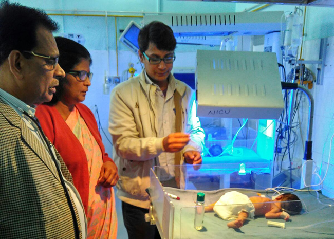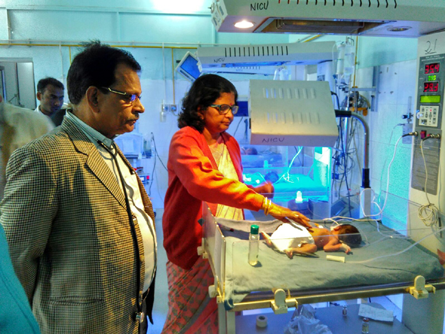 Stating the condition to be critical, the new born was admitted to NMCH. The treatment of the child began under the observation of the head of child disease unit Dr. Alka Singh and the incharge of the unit Dr. B.P.Jaiswal. According to the doctors, the child is very weak. The weight of the child is 1.8 gms while an average child weighs from 2.5 gms to 3 gms.